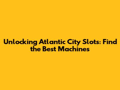 Unlocking Atlantic City Slots: Find The Best Machines