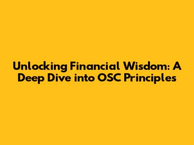 Unlocking Financial Wisdom: A Deep Dive Into OSC Principles