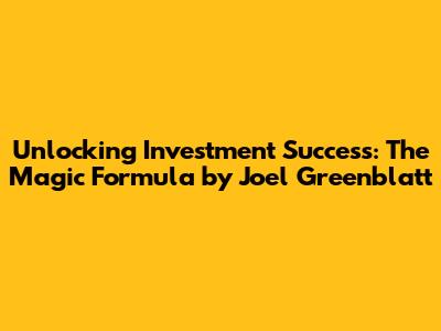 Unlocking Investment Success: The Magic Formula By Joel Greenblatt