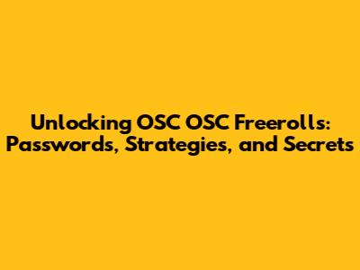 Unlocking OSC OSC Freerolls: Passwords, Strategies, And Secrets