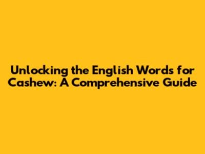 Unlocking The English Words For Cashew: A Comprehensive Guide