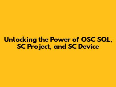 Unlocking The Power Of OSC SQL, SC Project, And SC Device