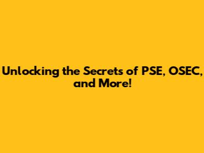 Unlocking The Secrets Of PSE, OSEC, And More!