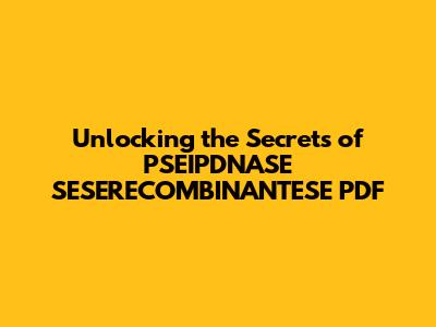 Unlocking The Secrets Of PSEIPDNASE SESERECOMBINANTESE PDF
