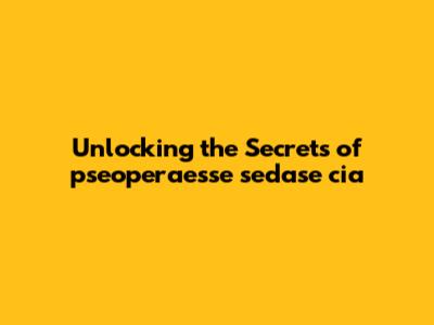Unlocking The Secrets Of Pseoperaesse Sedase Cia