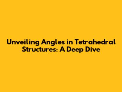 Unveiling Angles In Tetrahedral Structures: A Deep Dive