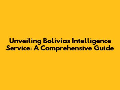 Unveiling Bolivia's Intelligence Service: A Comprehensive Guide