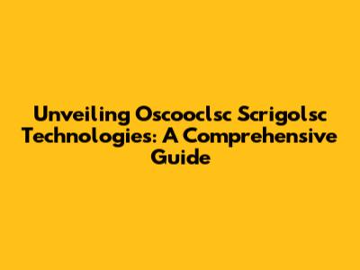 Unveiling Oscooclsc Scrigolsc Technologies: A Comprehensive Guide