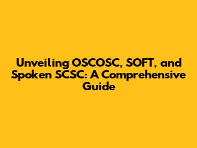 Unveiling OSCOSC, SOFT, And Spoken SCSC: A Comprehensive Guide