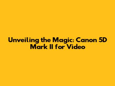 Unveiling The Magic: Canon 5D Mark II For Video