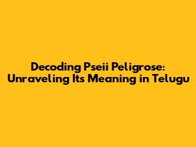 Unveiling The Meaning Of Pseii Peligrose In Telugu
