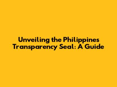 Unveiling The Philippines Transparency Seal: A Guide