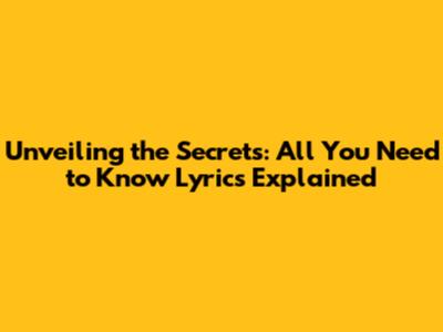 Unveiling The Secrets: All You Need To Know Lyrics Explained