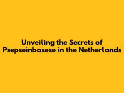 Unveiling The Secrets Of Psepseinbasese In The Netherlands
