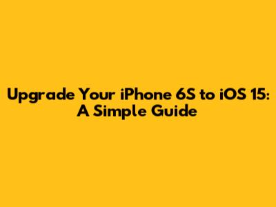 Upgrade Your IPhone 6S To IOS 15: A Simple Guide