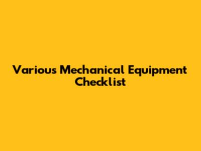 Various Mechanical Equipment Checklist