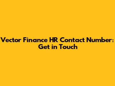 Vector Finance HR Contact Number: Get In Touch