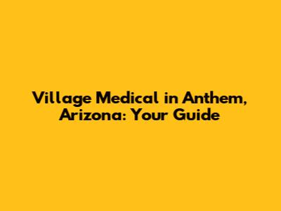 Village Medical In Anthem, Arizona: Your Guide
