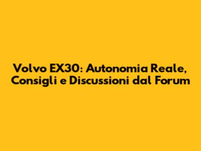 Volvo EX30: Autonomia Reale, Consigli E Discussioni Dal Forum