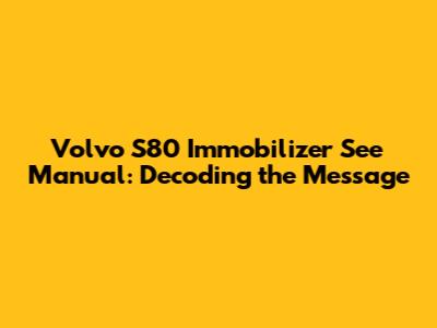 Volvo S80 Immobilizer Issue: What 'See Manual' Means