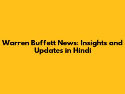 Warren Buffett News: Insights And Updates In Hindi