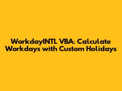 WorkdayINTL VBA: Calculate Workdays With Custom Holidays