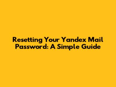 Yandex Mail Password Reset Guide