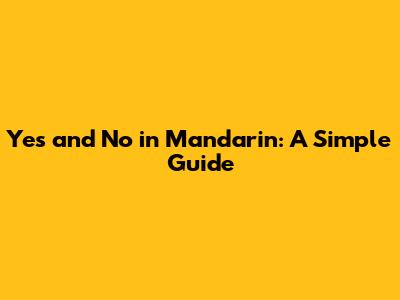 Yes And No In Mandarin: A Simple Guide