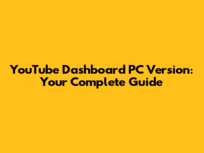 YouTube Dashboard PC: Your Complete Guide